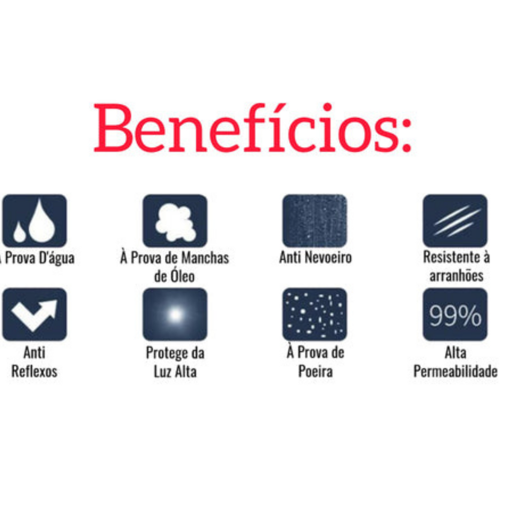 Proporciona uma visão mais limpa em dias de chuva e diminui reflexo dos veículos, protegendo você e seus passageiros de acidentes no trânsito e prejuízos do seu carro.